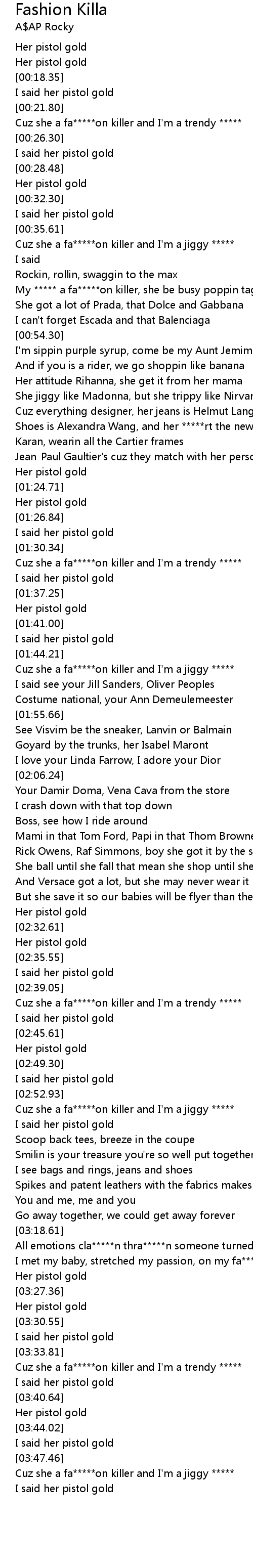 Cuz she a fa*****on killer and I'm a trendy ***** |