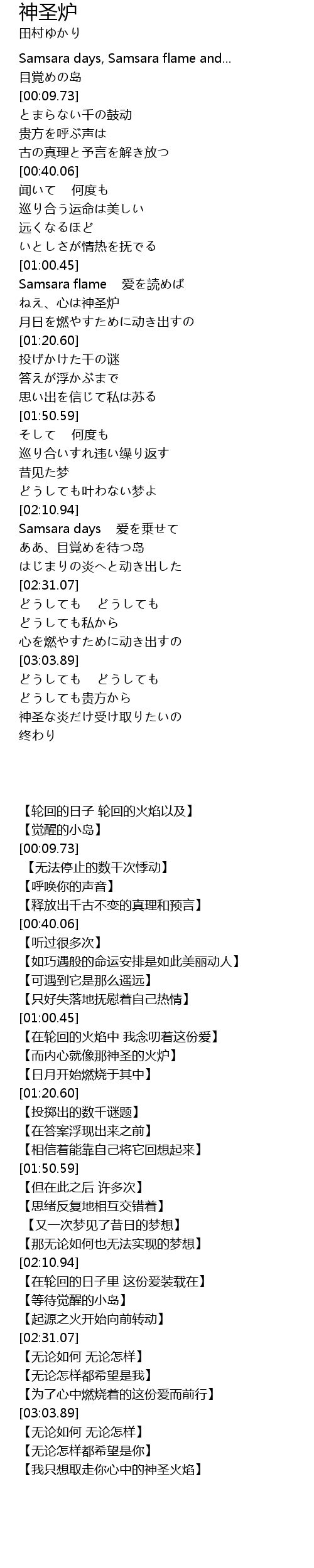 | [00:00.40] | Samsara days, Samsara flame and... |