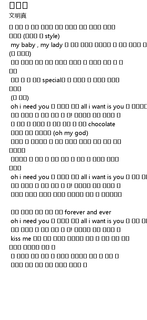 oh i need you 내 곁에만 있어 all i want is you 그 누구보다 더 |