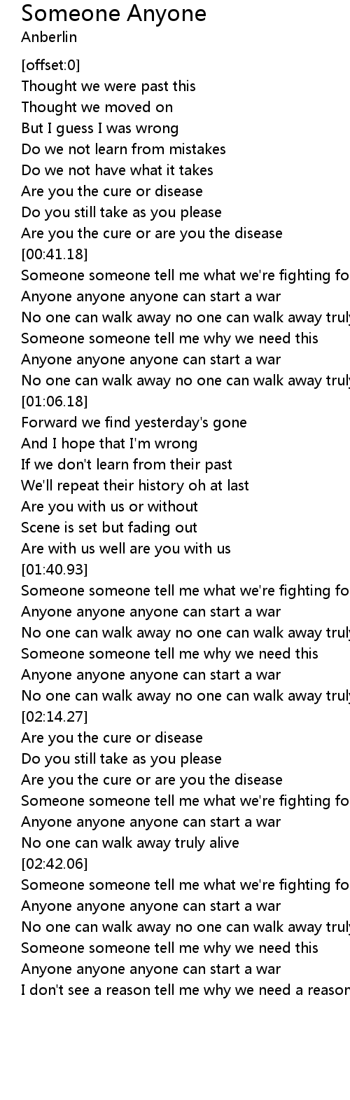 | [01:46.87] | Someone someone tell me what we're fighting for |
