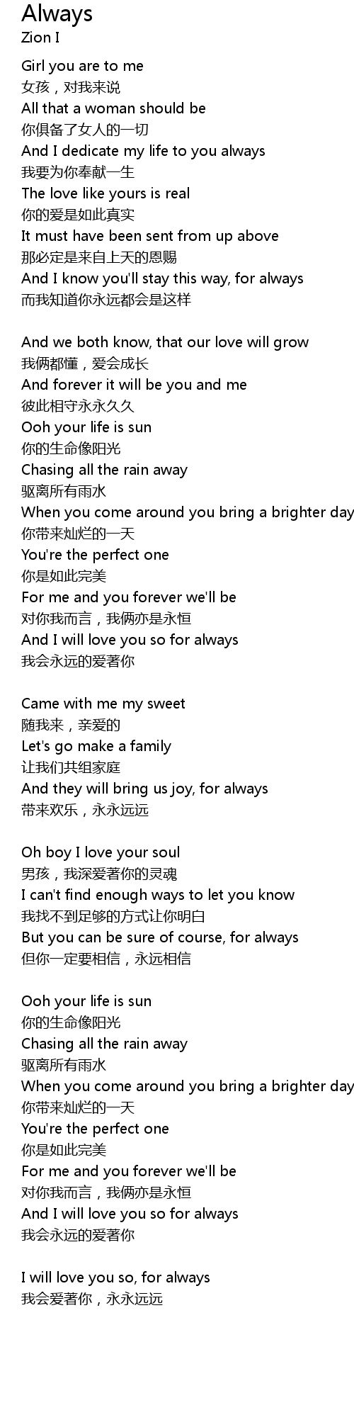 | And I will love you so for always | |