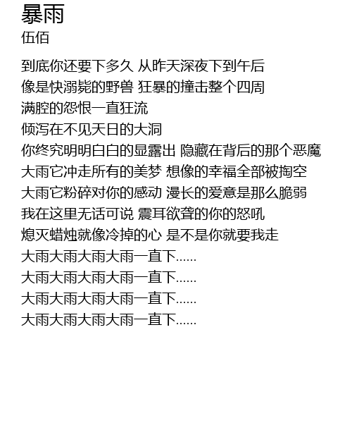 | [02:06.060] | 大雨大雨大雨大雨一直下...... |