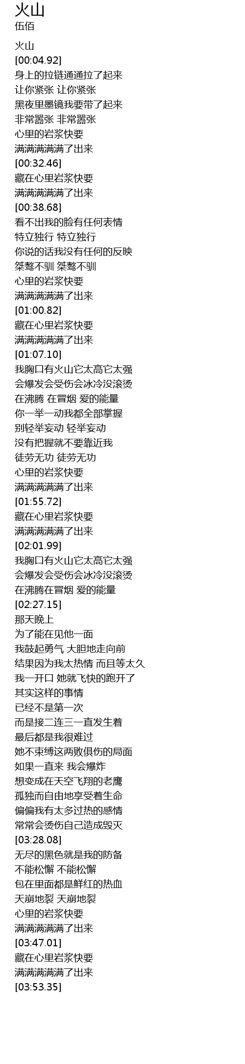 | [02:04.35] | 我胸口有火山它太高它太强 |