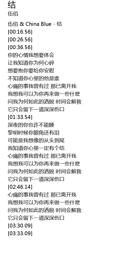| [00:06.56] | 伍佰 & China Blue - 结 |