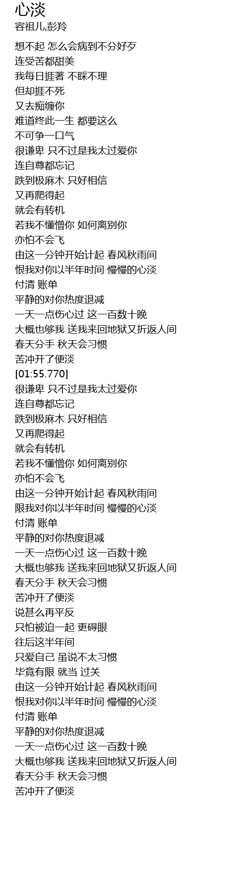 | [03:48.000] | 恨我对你以半年时间 慢慢的心淡 |