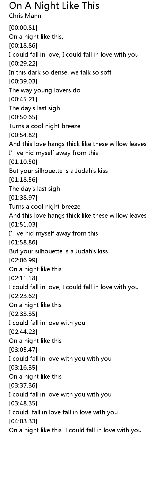 | [04:06.39] | On a night like this I could fall in love with you |