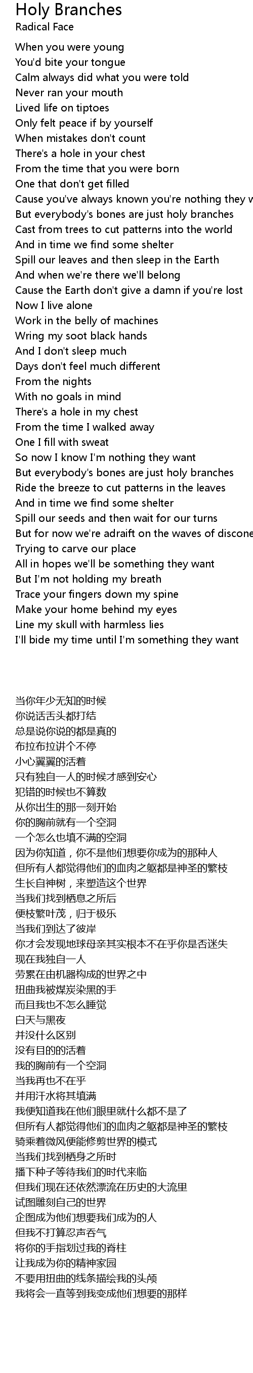 But everybody's bones are just holy branches |