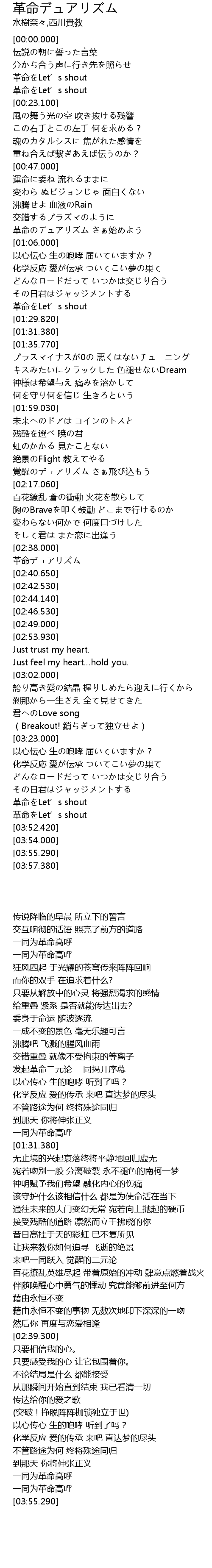 | [01:02.440] | 革命のデュアリズム さぁ始めよう |