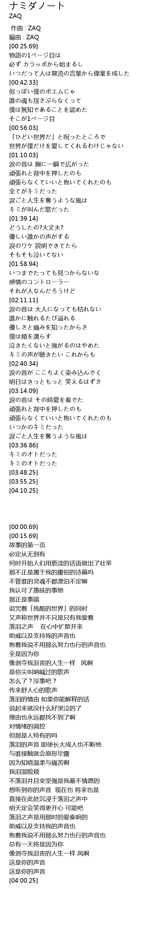 | [00:00.00] | 作曲 : ZAQ |