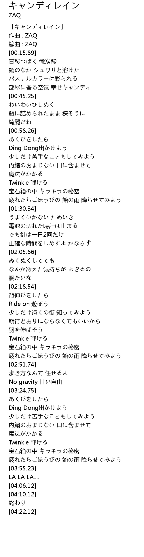 | [00:37.19] | 部屋に香る空気 幸せキャンディ |