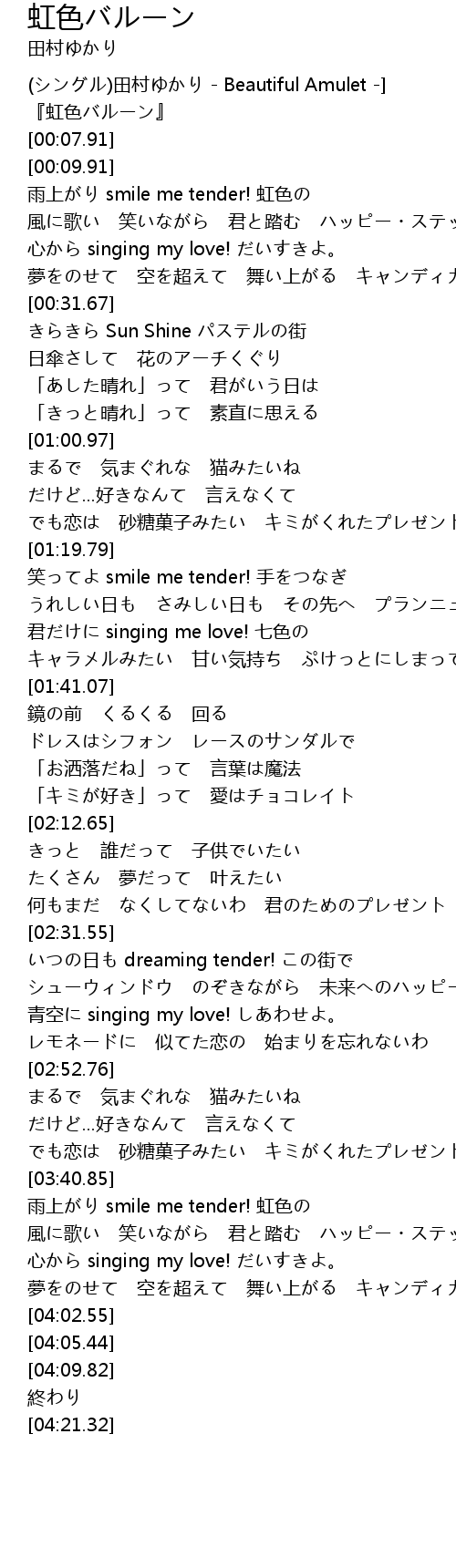 | [00:01.91] | 『虹色バルーン』 |