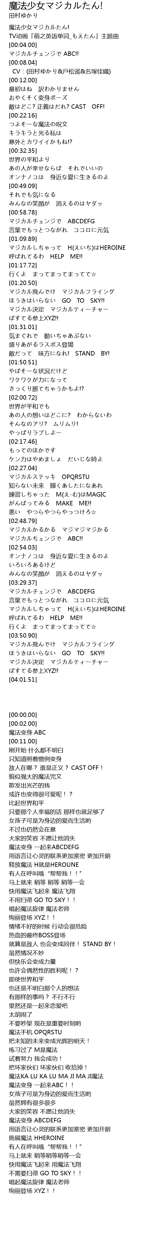 | [02:28.38] | マジカルステッキ OPQRSTU |