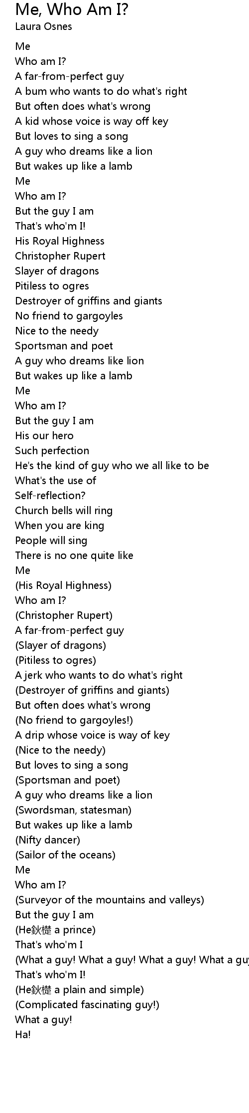 | [01:04.744] | Who am I? |