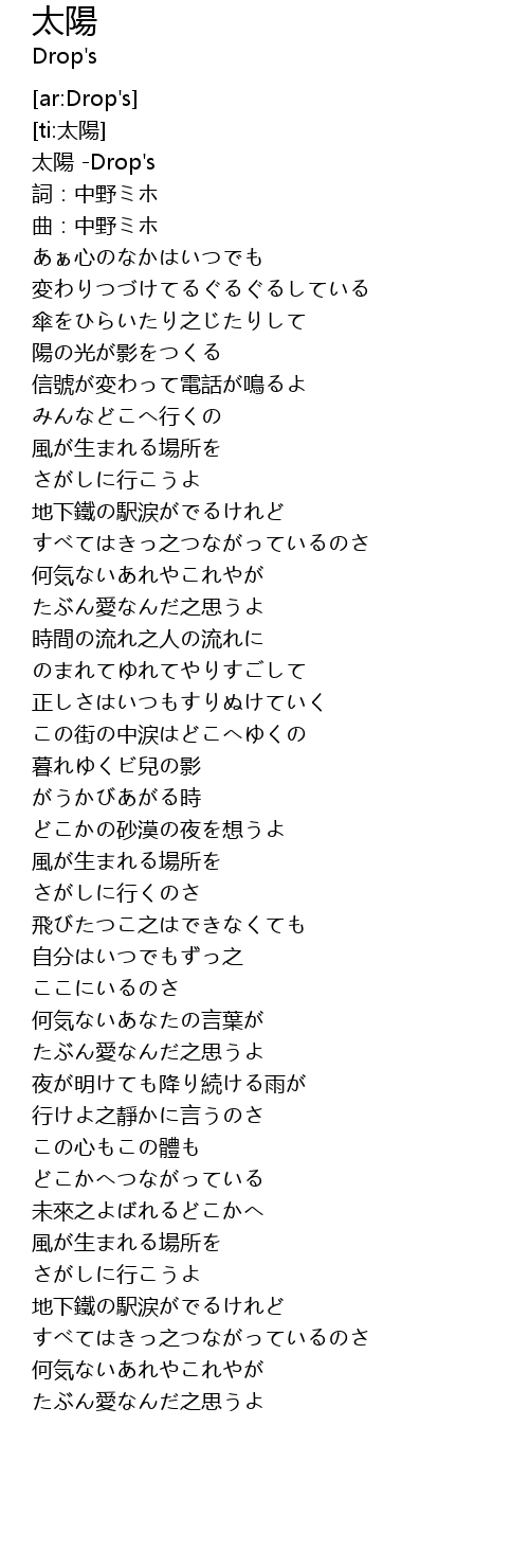 | [00:01.54] | 太陽 -Drop's |