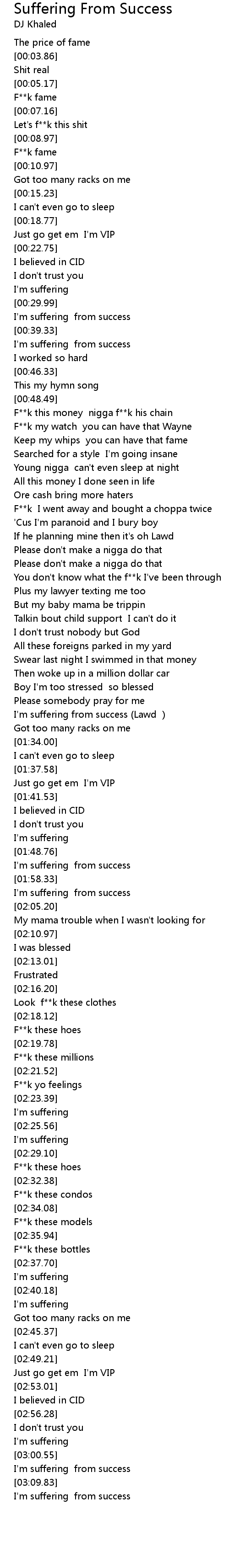 I'm suffering from success (Lawd ) |