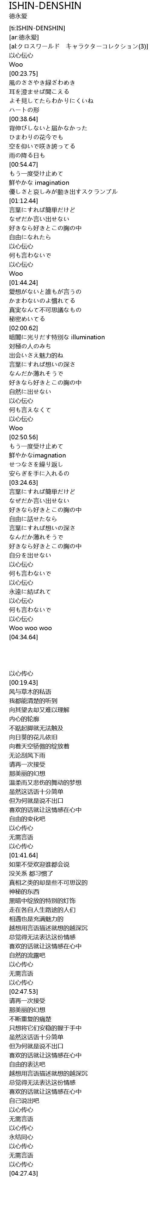 | [ti:ISHIN-DENSHIN] | |