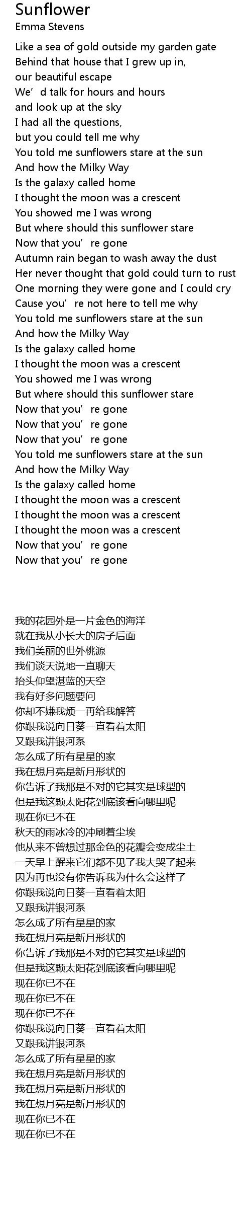 | [00:39.160] | You told me sunflowers stare at the sun |