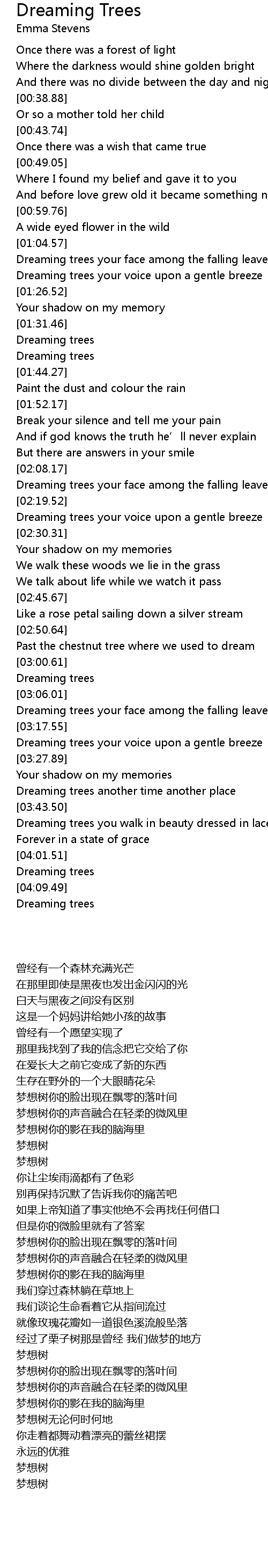 | [03:32.55] | Dreaming trees another time another place |