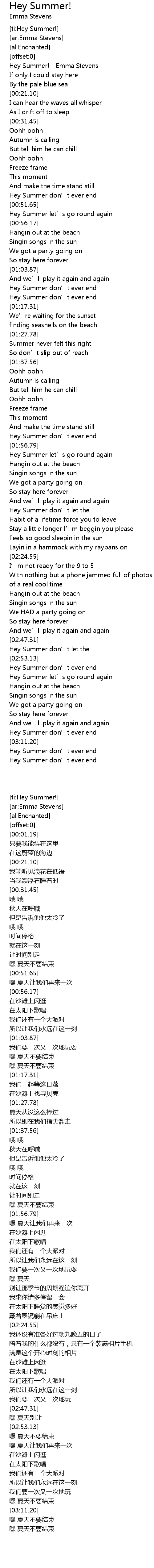 | [03:19.80] | Hey Summer don’t ever end |