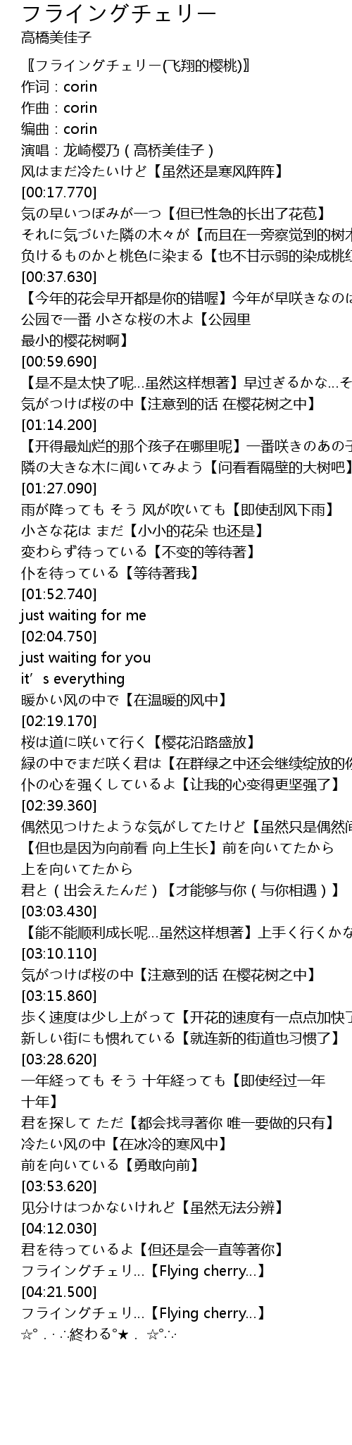 | [04:18.740] | フライングチェリ…【Flying cherry…】 |