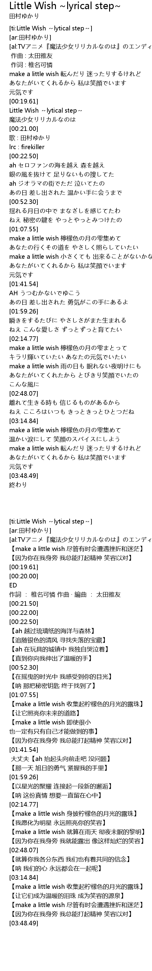 | [00:20.00] | Little Wish lytical step |