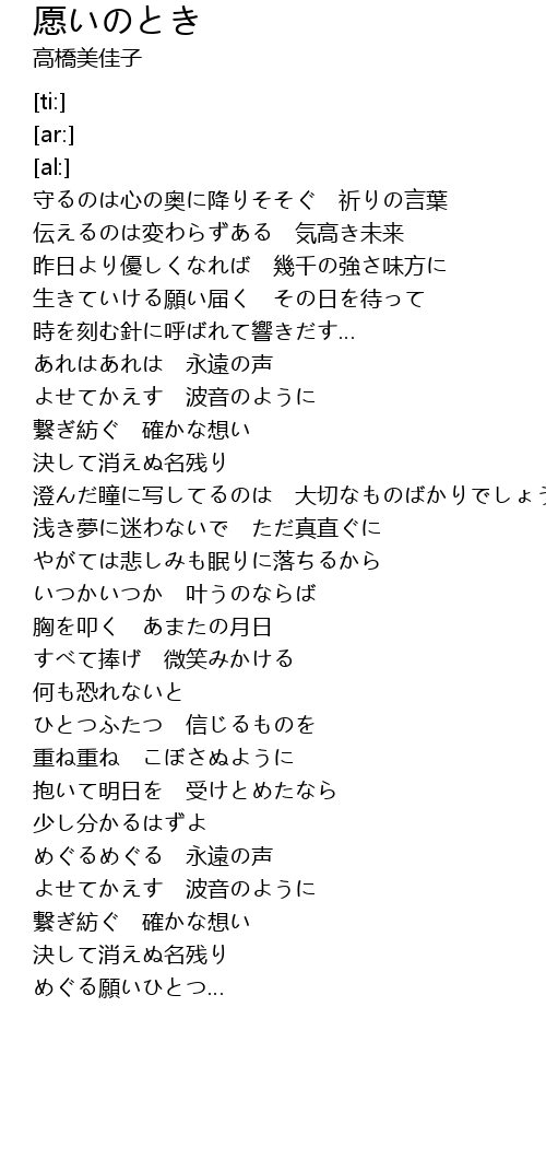 | [04:03.42] | めぐる願いひとつ… |