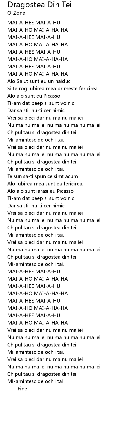 Nu ma nu ma iei nu ma nu ma nu ma iei. |