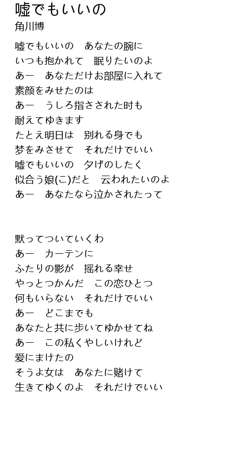 | Song | 嘘でもいいの |