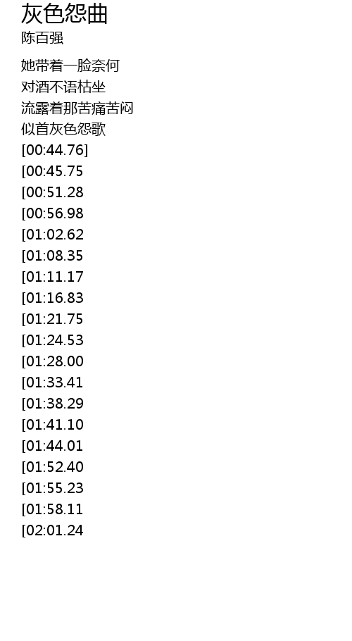 | [00:40.05] | shì shǒu huī sè yuàn gē |