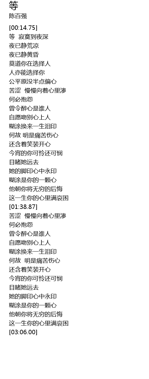 | [01:01.18] | 糊涂换来一生泪印 |