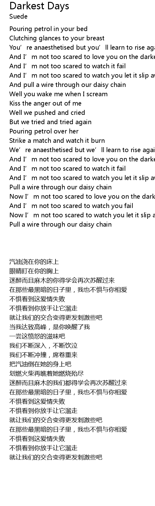 | [00:33.65] | And I’m not too scared to love you on the darkest days |