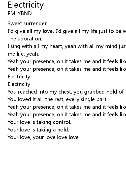 | Yeah your presence, oh it takes me and it feels like electricity. | |
