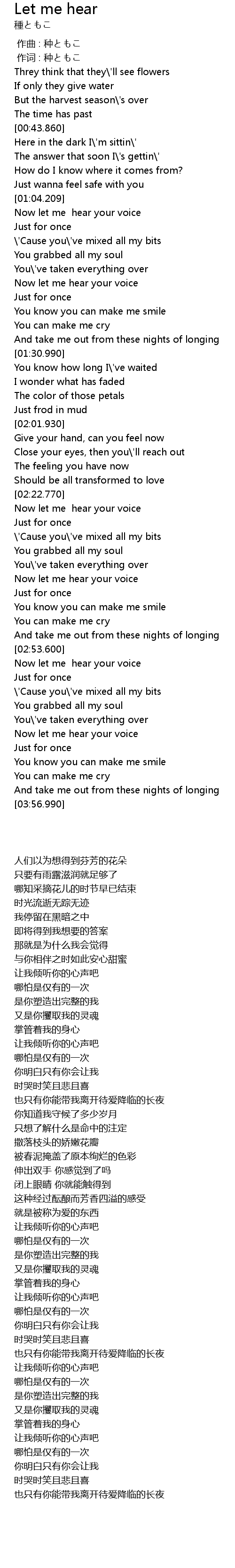 | [02:23.780] | Now let me hear your voice |