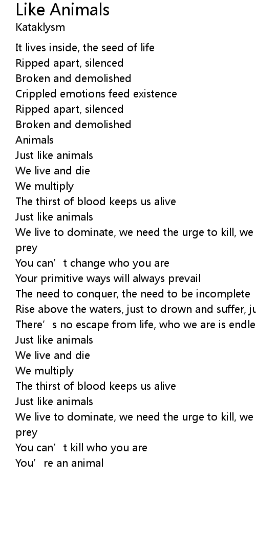 | We live to dominate, we need the urge to kill, we are the victims, we are the prey | |