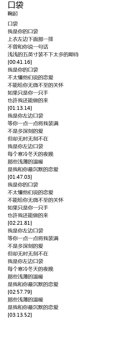 | [00:15.94] | 我是你的口袋 |