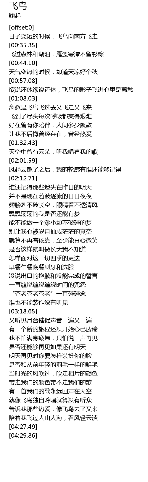 | [04:15.37] | 告诉我那些热爱,像飞鸟去了又来 |