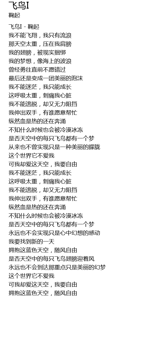 | [01:49.44] | 是否天空中的每只飞鸟都有一个梦 |