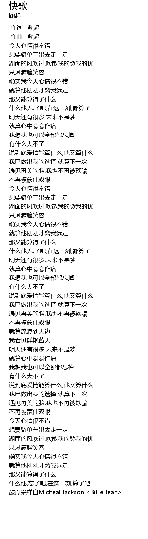 | [05:05.89] | 鼓点采样自Micheal Jackson <Billie Jean> |