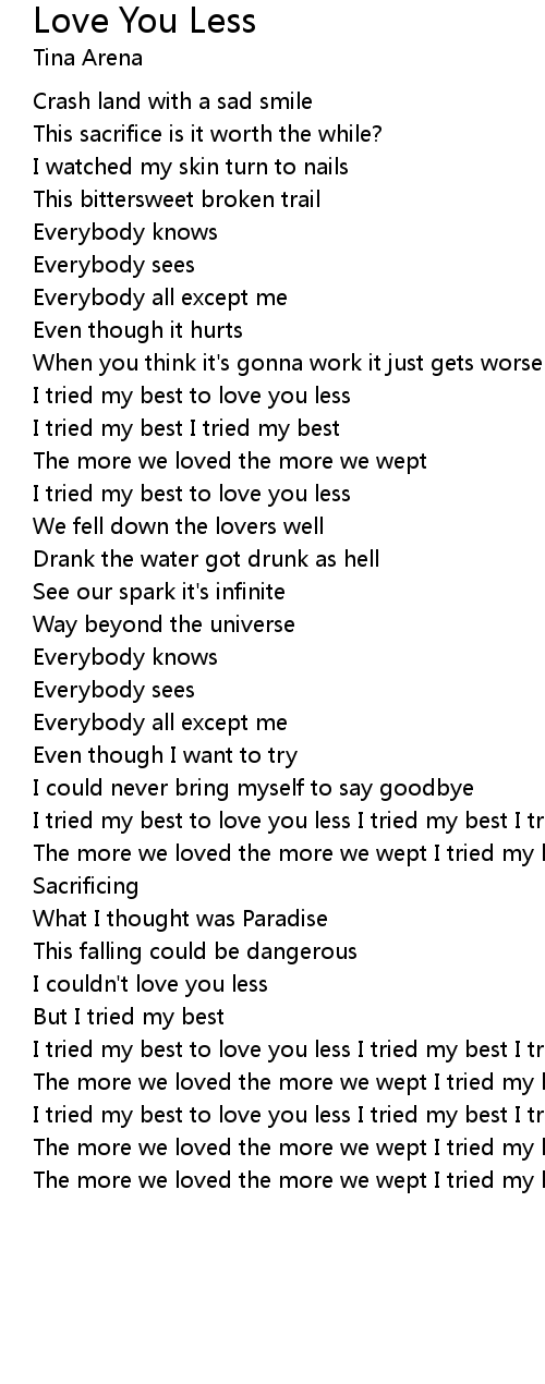 I tried my best to love you less I tried my best I tried my best |