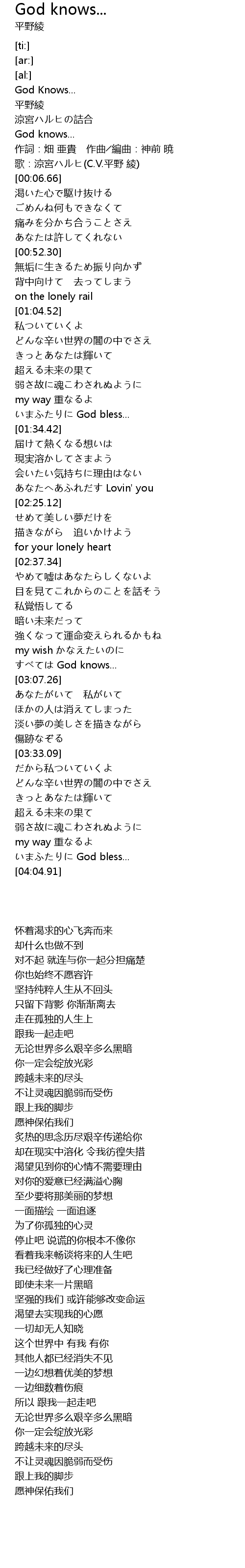 | [03:03.00] | すべては God knows... |
