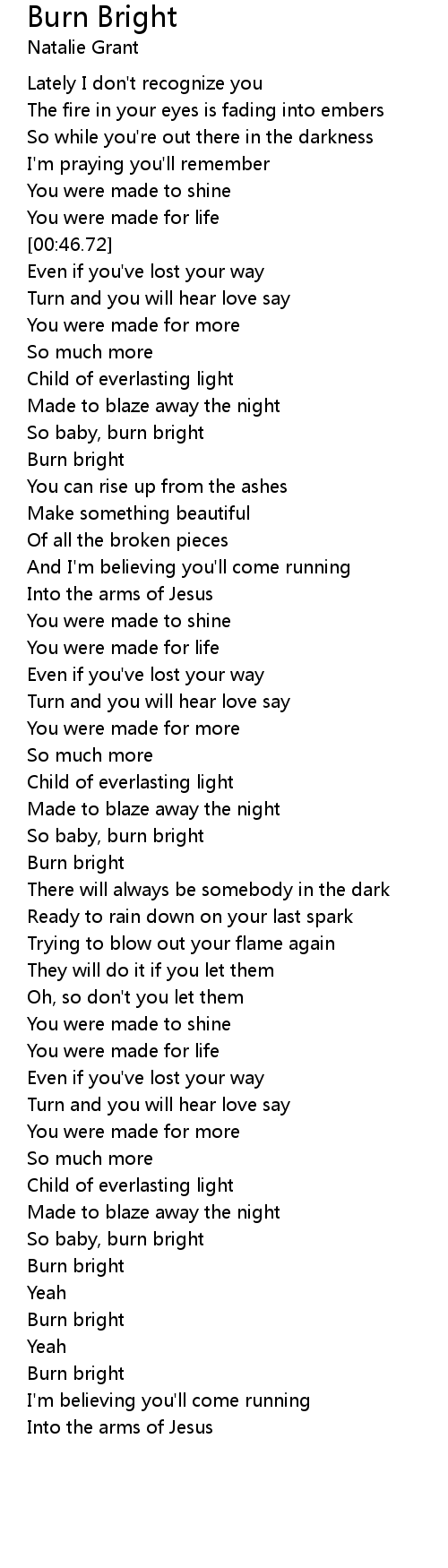 So baby, burn bright |