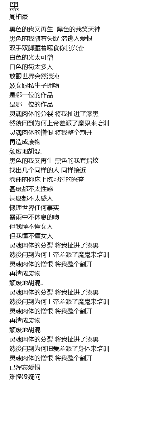| Song | 黑 |