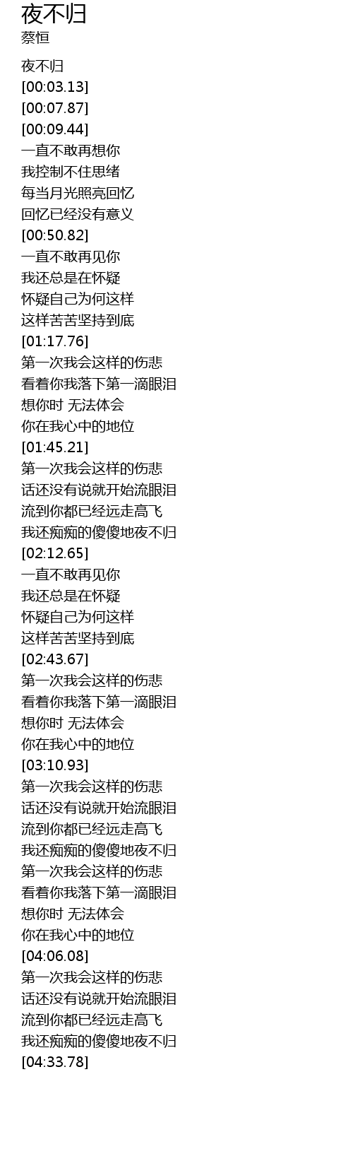 | [03:32.07] | 我还痴痴的傻傻地夜不归 |