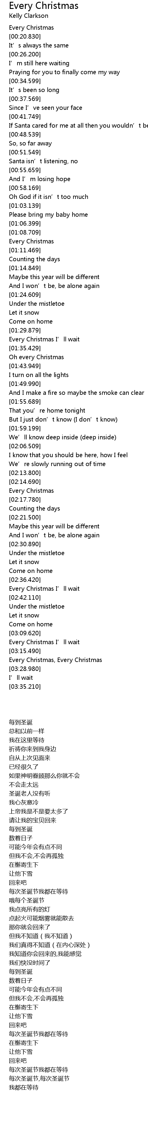| [00:19.460] | Every Christmas |