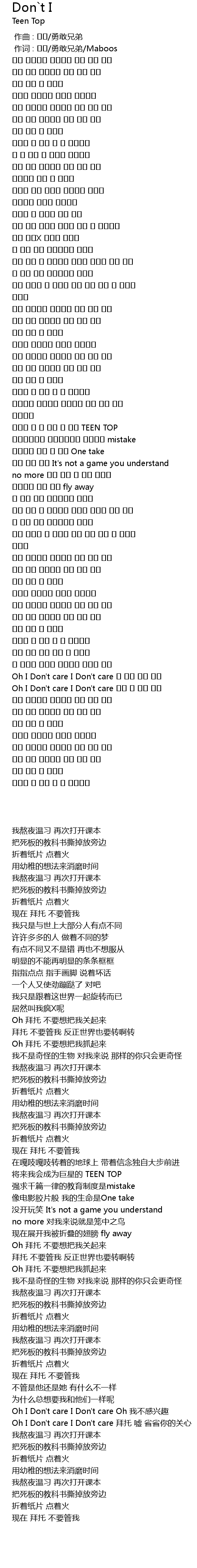 Oh I Don't care I Don't care 오 나는 관심 없어 |