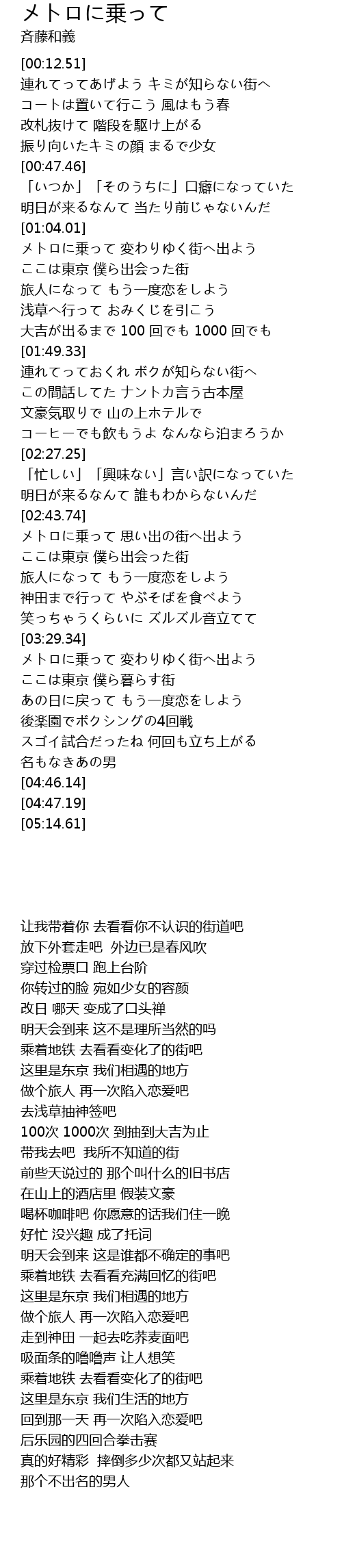 | [02:45.85] | メトロに乗って 思い出の街へ出よう |