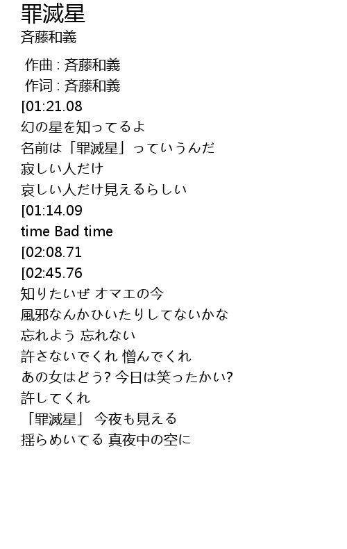 | [00:42.45] | 名前は「罪滅星」っていうんだ |