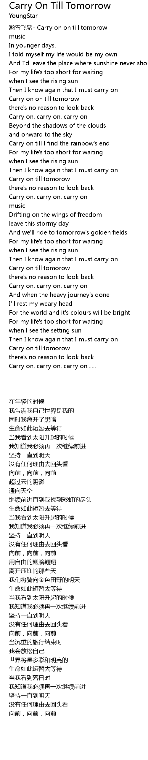 | [00:00.00] | han xue fei zhu Carry on on till tomorow |