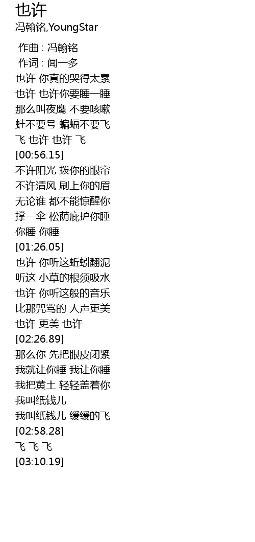 | [00:00.00] | 作曲 : 冯翰铭 |