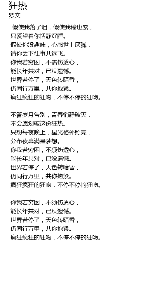 | fēng kuáng fēng kuáng de kuáng wěn, bù tíng bù tíng de kuáng wěn. | |